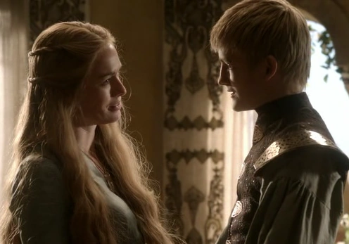 Over Joffrey's corpse, Tywin lectures Tommen on what it takes to be a good king, despite Cersei's feeble complaints that this is neither the time nor the place for this. He opines that Joffrey was neither a wise nor a good king, and that had he been, he may still be alive. After Tywin leaves and Jaime arrives, Cersei is adamant that it was Tyrion who killed Joffrey, and asks Jaime to kill him to avenge their son. Jaime scornfully asks why he was forced to love such a hateful woman, and they angrily have sex in front of their son's corpse.[29]