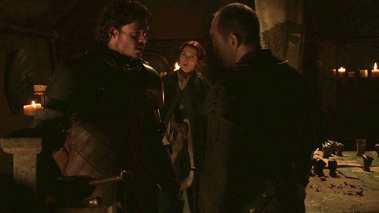 Considering that Tywin didn't stop to negotiate when his own eldest son was captured, taking his younger nephews hostage will have no impact on the war. Edmure tries to at least point out that they lost only two hundred men at Stone Mill and multiple Lannister soldiers died for every man they lost, at which Robb cuts him off and shouts that they need men more than the Lannisters do. At this point, the Lannisters are in such a good strategic position that they can afford to be patient, and grind down Robb's forces through simple attrition.[23]