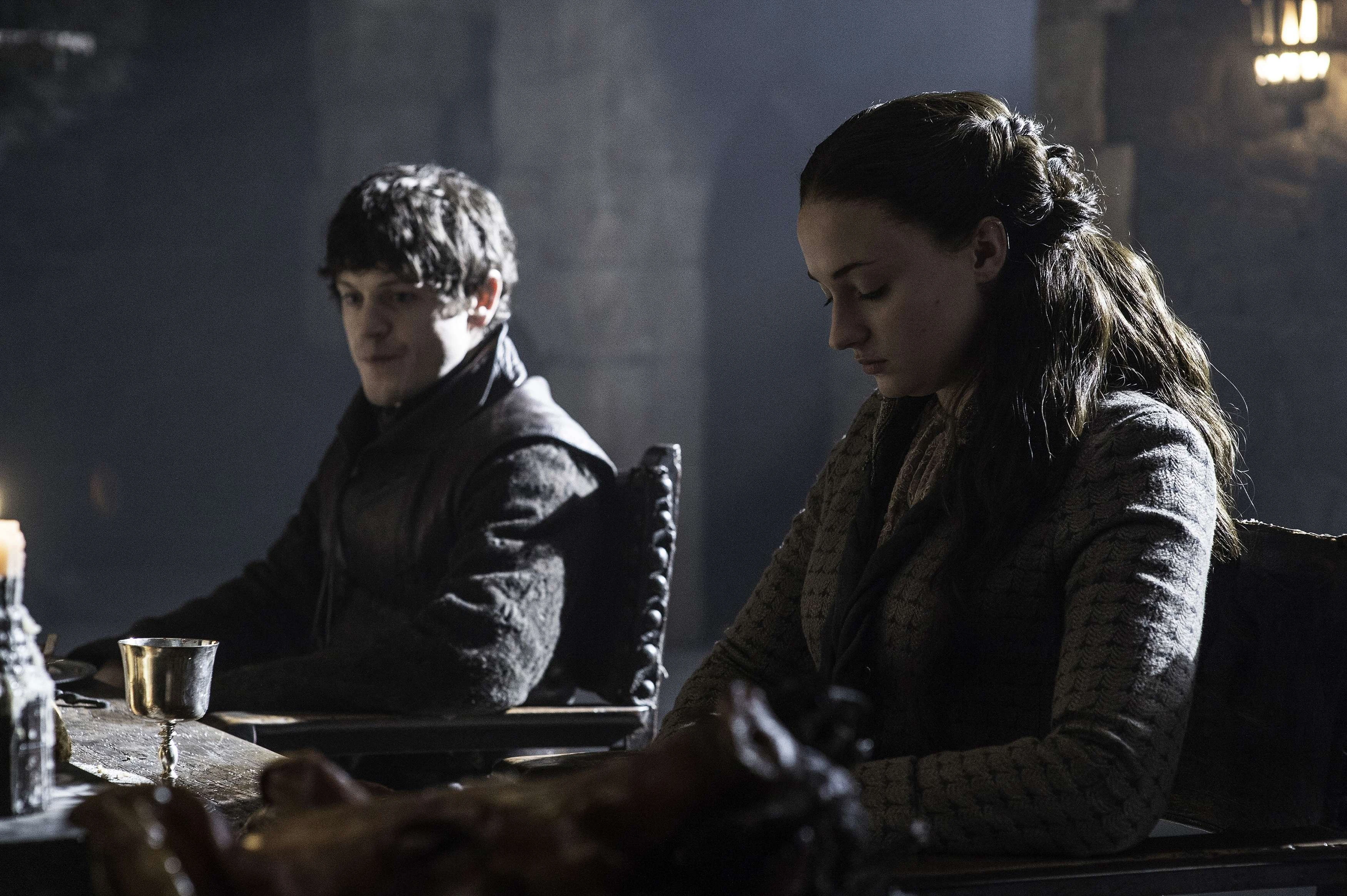 Theon reveals to Sansa that Bran and Rickon are indeed alive.