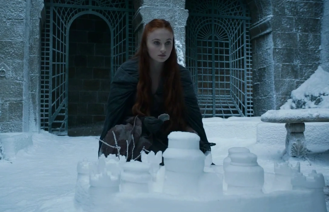 Sansa contructs a snow castle in the Eyrie