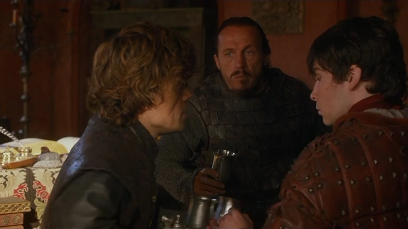 In a Small Council meeting, Tyrion is made Master of Coin by his father after it is announced the departure of Lord Baelish to the Eyrie. Following the meeting, Tyrion, Podrick Payne and Ser Bronn visit the brothel where Tyrion provides the young Pod with a late gift, thanking him for his heroism on the battlefield at Blackwater. Leaving Podrick with his gift, the young squire later returns to Tyrion and Ser Bronn while they're drinking and discussing King's Landing's endless debt to the Bank of Braavos, and they are intrigued to learn how he managed to leave the brothel without having to pay the girls.[25]