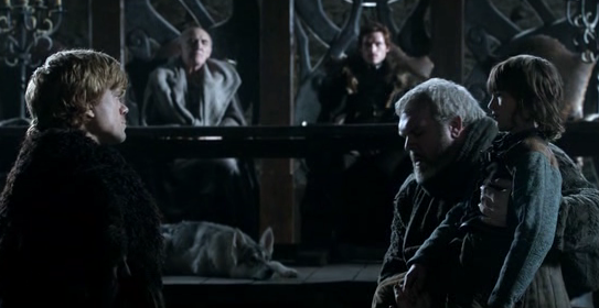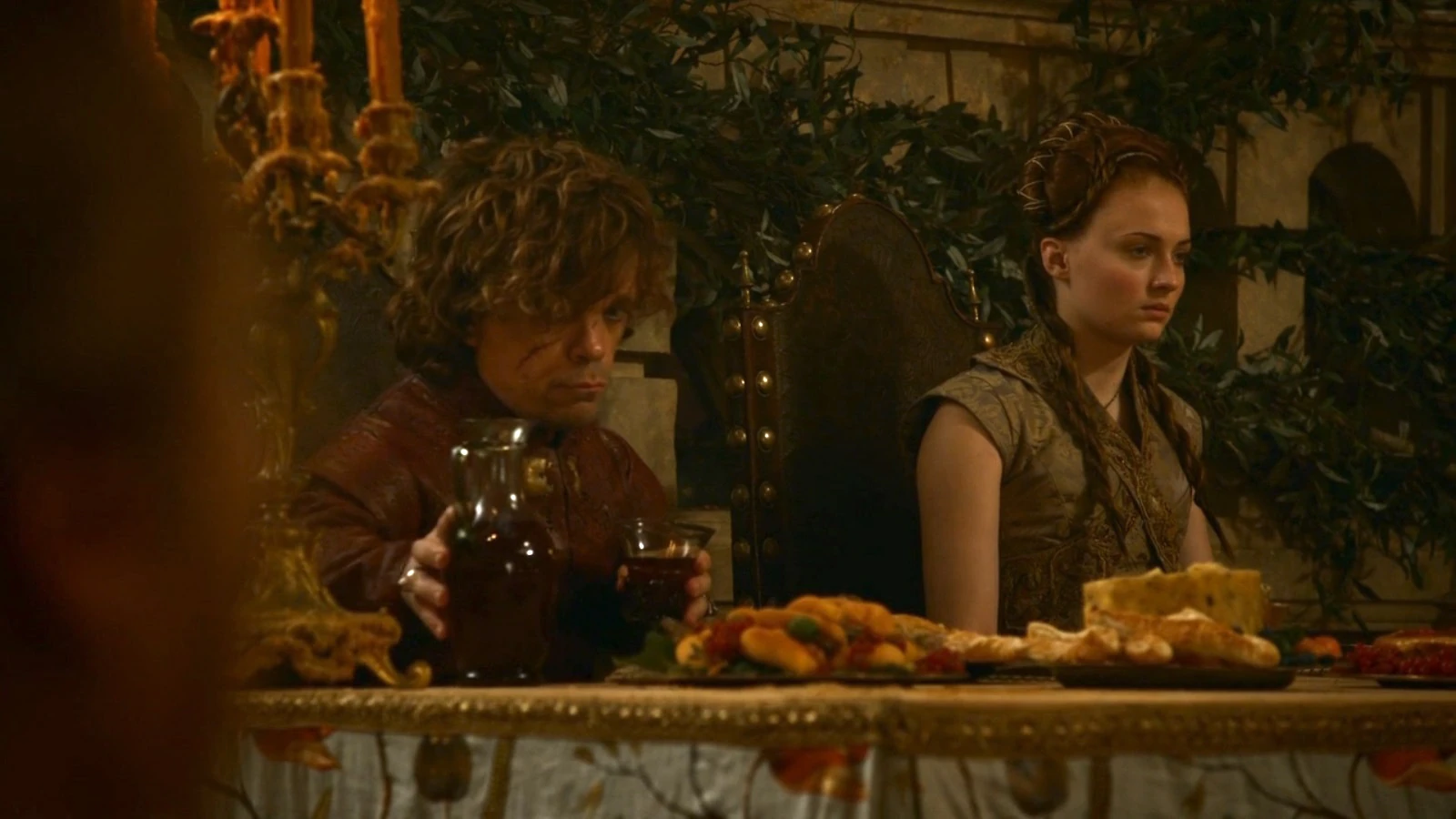 In result, Tyrion hesitantly marries Sansa. At the night of their wedding, Tyrion gets drunk and threatens Joffrey with castration after the latter commands him to carry out the bedding ceremony with Sansa. Tywin calms Joffrey and Tyrion takes Sansa to his bedchamber, where he tells her that his lord father has commanded him to consumate the marriage. As Sansa begins to disrobe, Tyrion refuses, insisting that he won't bed her until she wants him to, then he passes out drunk.[29]